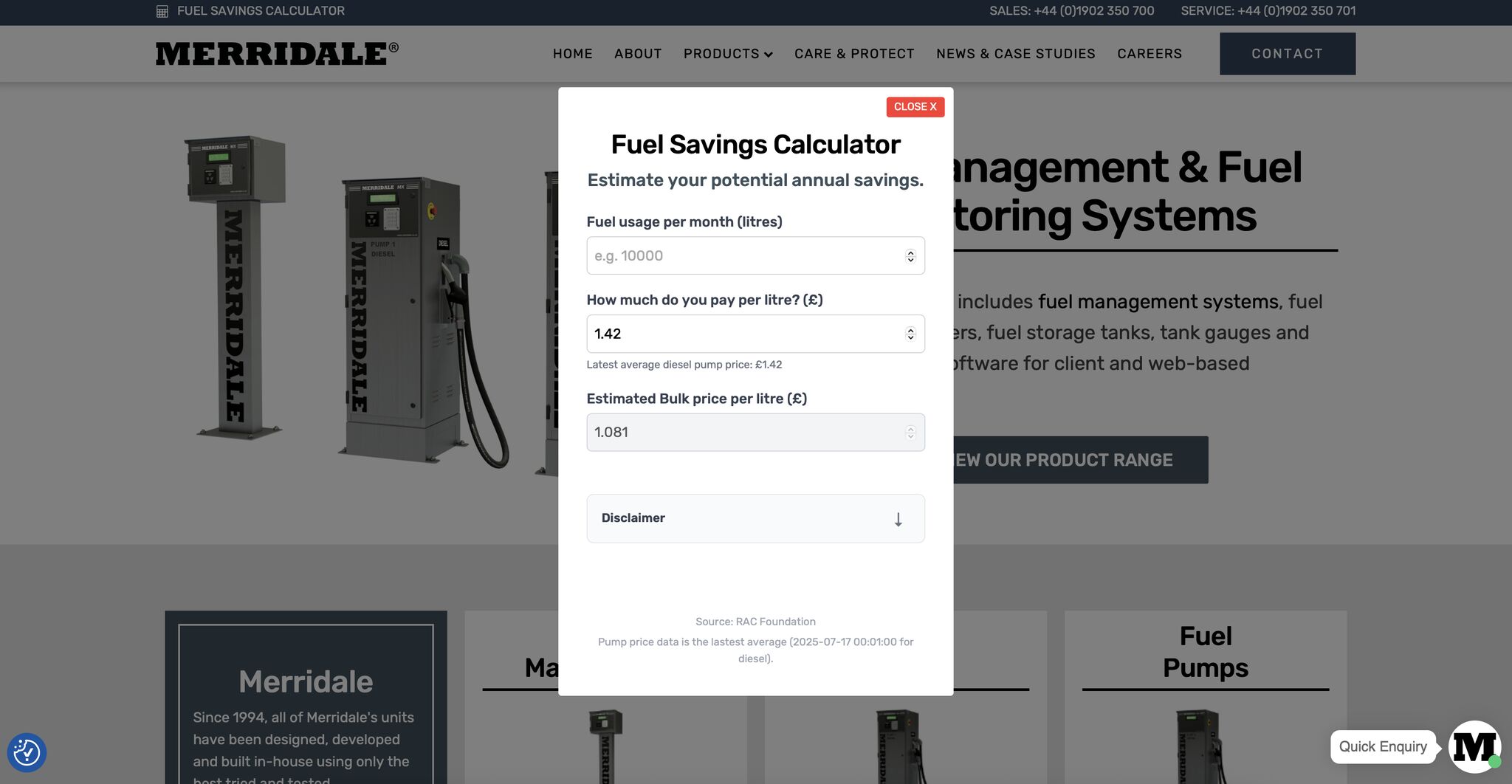 To use it, you just enter how much fuel your fleet uses each month and what you’re currently paying per litre. The calculator will then estimate how much you’re likely to save over the course of a year if you move to a Merridale system. For many businesses, the savings can be significant — especially if they choose to store fuel on-site and buy in bulk at lower prices.
